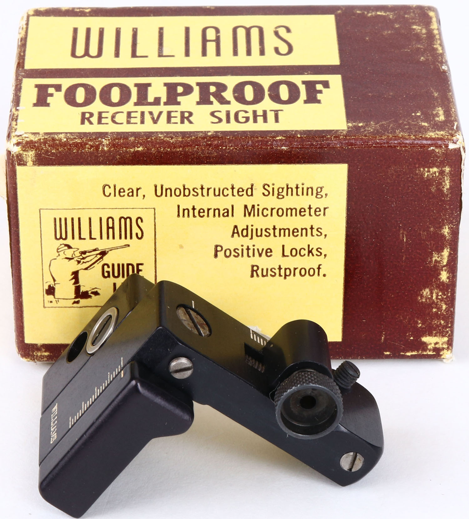 Williams receiver sight, in original box, Model f-p, for various models, all bright and clean. Grade: Excellent - Value: 50 to 150