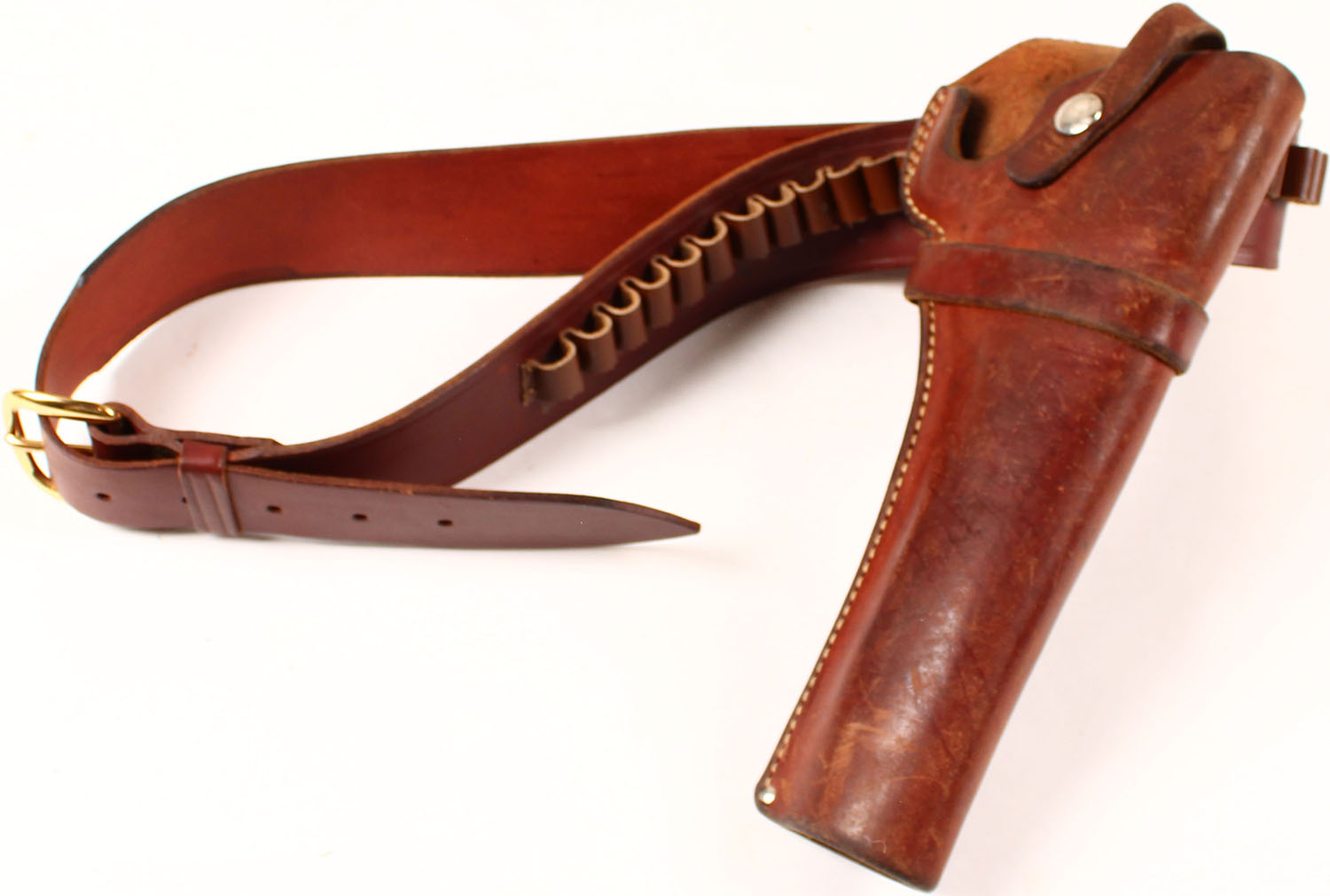 Leather belt and holster, ''Andersons Sporting Goods Salem, Oregon 96 Blackhawk 357 6 1/2'' pistol holster. Grade: Excellent - Value: 20 to 80