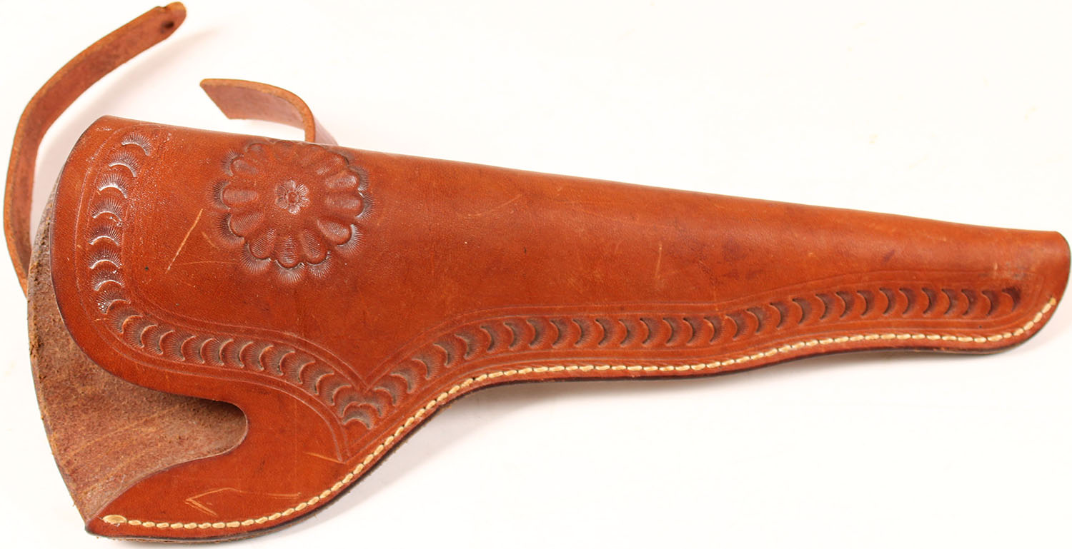 Unmarked Leather pistol holster, 9A, has tooling. Grade: Very good ++ - Value: 4 to 50