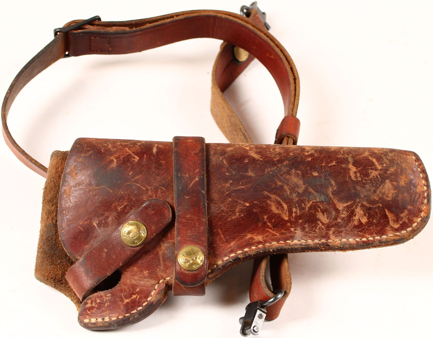 Hunter Leather pistol holster, has heavy scuffing. Grade: Very good - Value: 4 to 40
