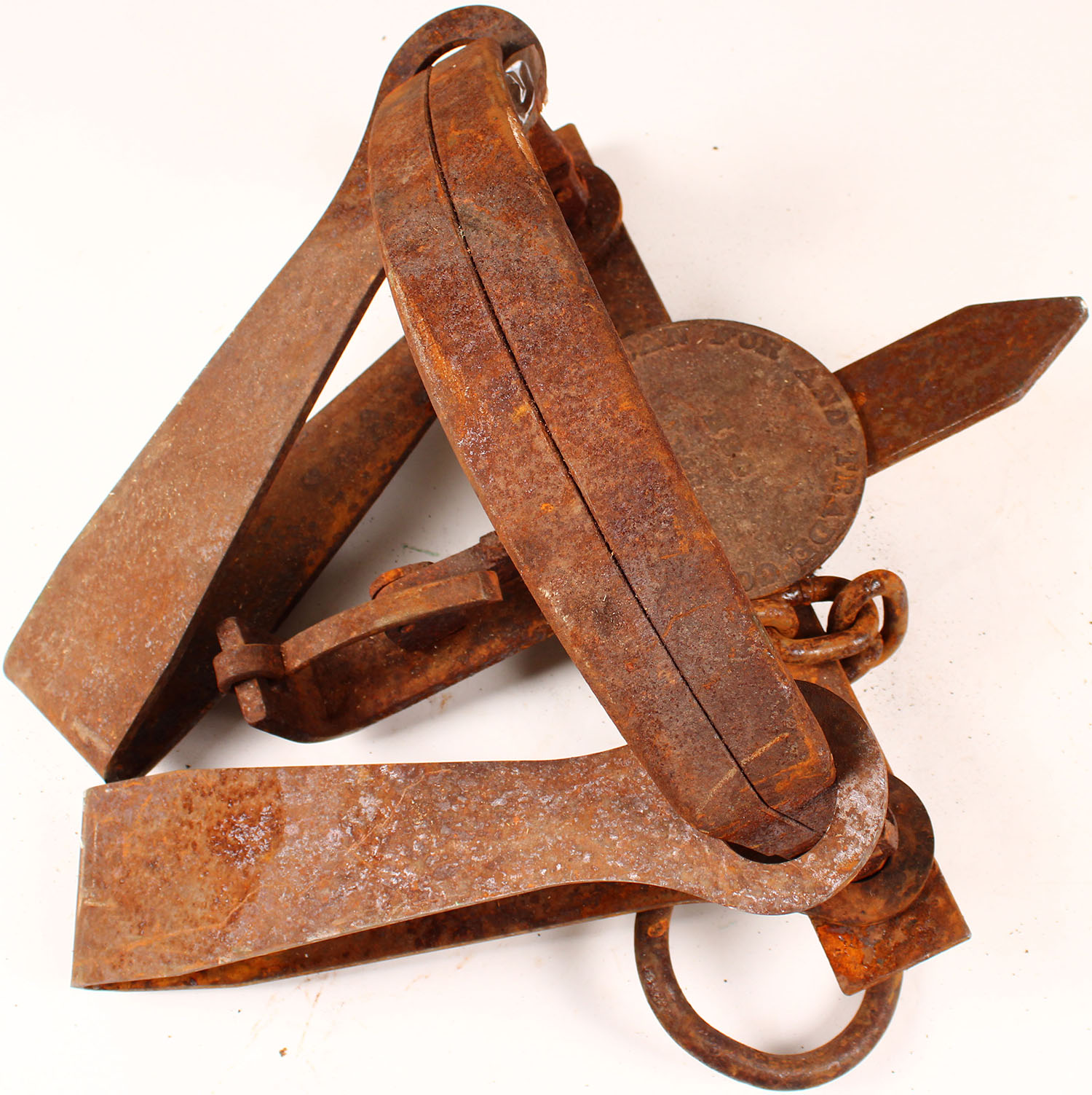 RARE! American Fur and Trade Company Bear Trap, ''HBC #6'', Lots of rust throughout entire trap but can still read the pan. 23'' x 20'' x 13'', Grade: Poor - Value: 50 to 500