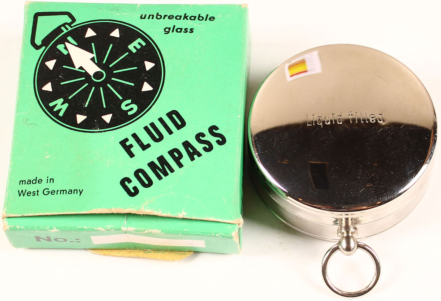 Fluid Compass, made in West Germany, in orignal box, very bright and clean. Grade: Excellent - Value: 10 to 50