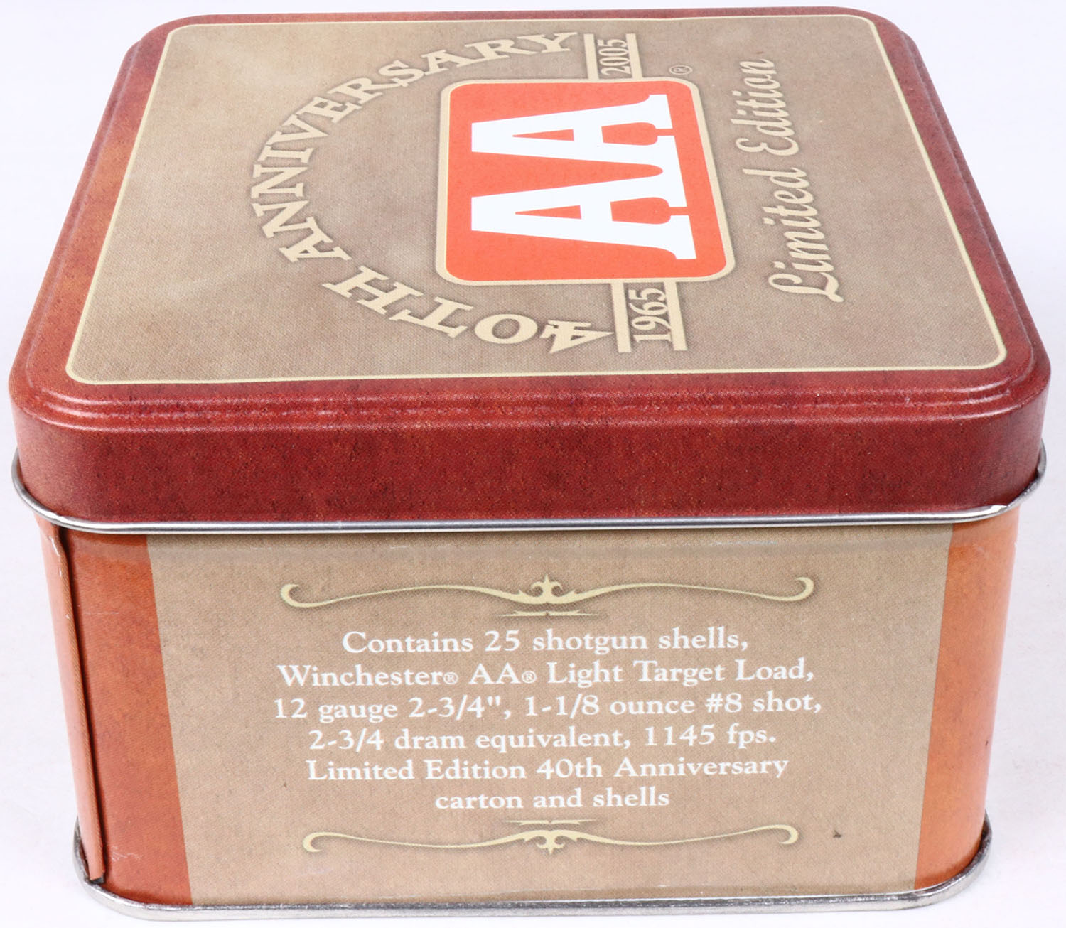 Winchester, AA 40TH ANNIVERSARY LIMITED EDITION 1965-2005, 12ga., 1pc., FULL, 25 count metal tin. Grade: MINT - Value: 16 to 40