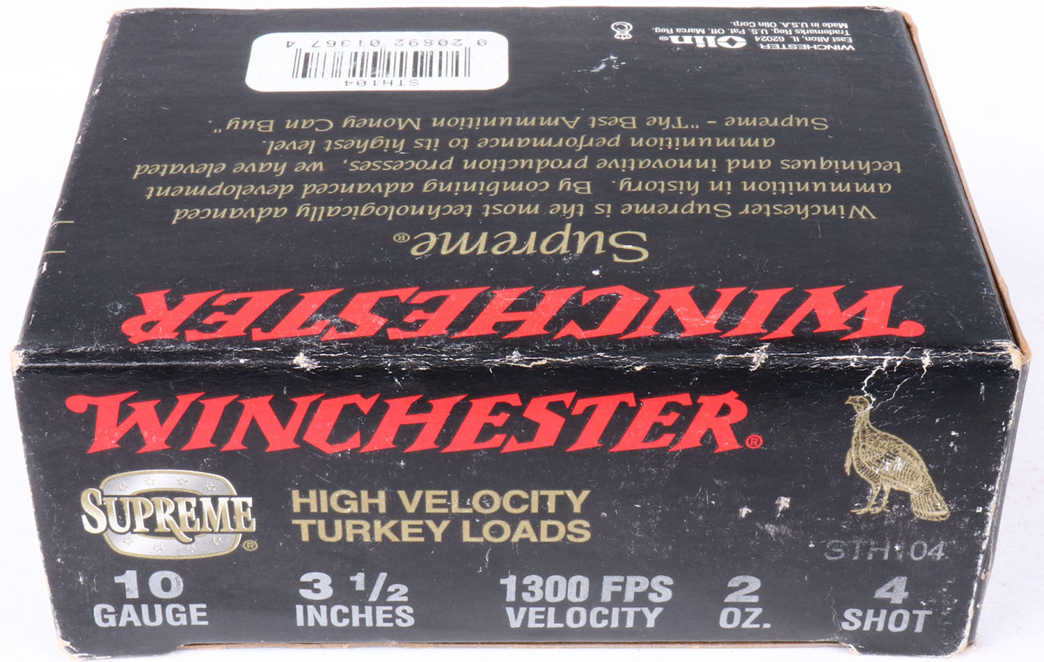 Winchester, Supreme Turkey Loads, 10ga., 1pc., Full, shot size 4, box is solid & shells are excellent. Grade: Excellent + - Value: 8 to 30