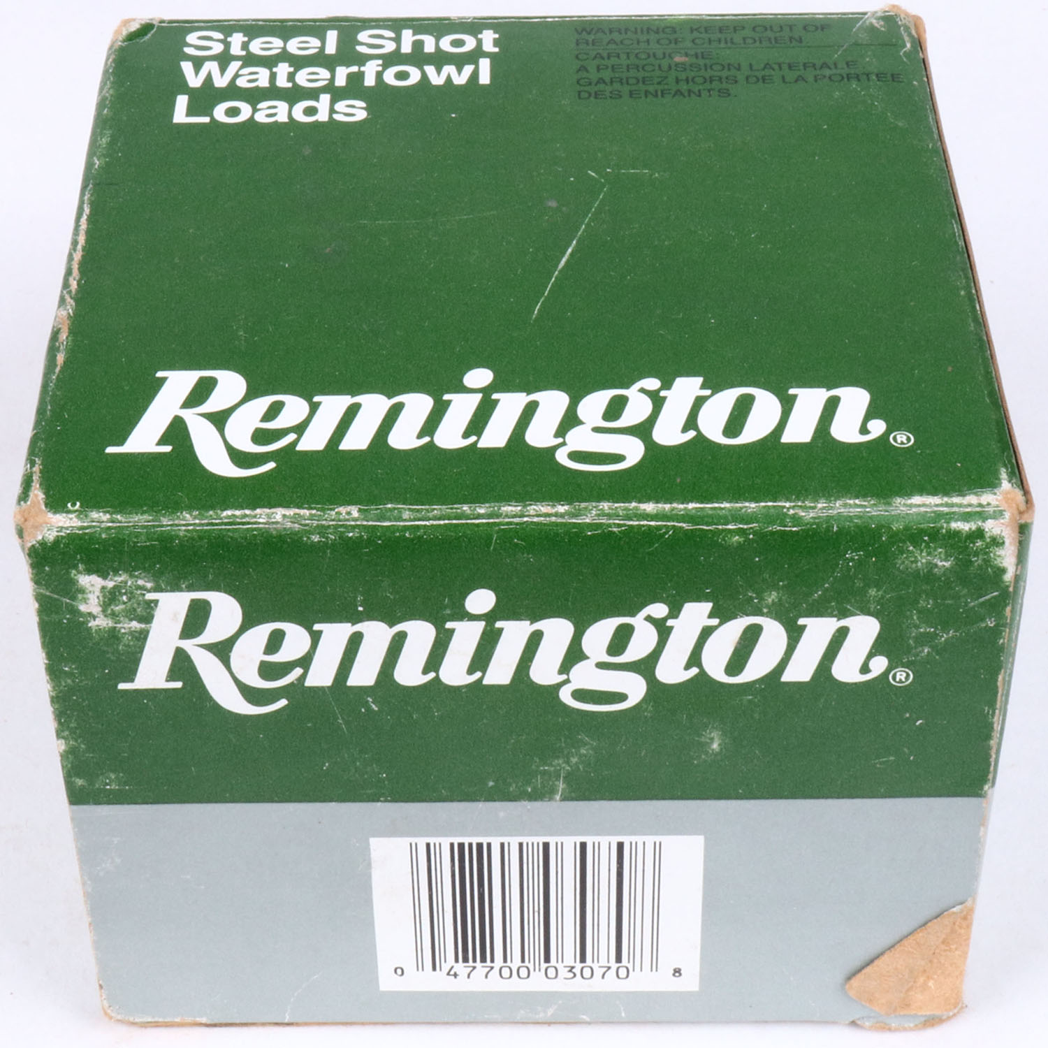 Remington, Steel Shot Waterfowl Load, 20ga., 1pc., Full with 11rds being incorrect, shot size 2, multi-colored box, shells are excellent. Grade: Excellent - Value: 8 to 20