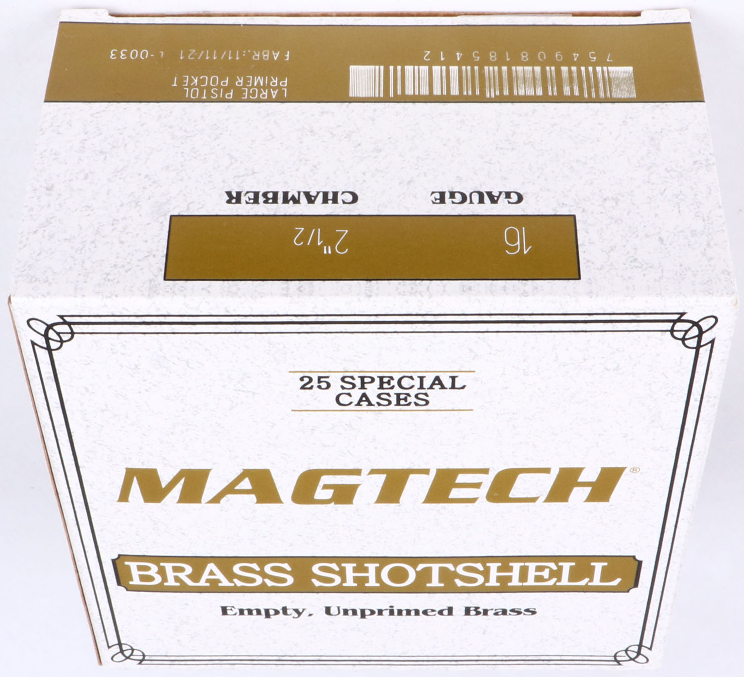 Magtech, 16ga., 1pc., Partial 20rds, shot size Empty Unprimed Brass, box is solid, Shells are excellent. Grade: Excellent + - Value: 10 to 30