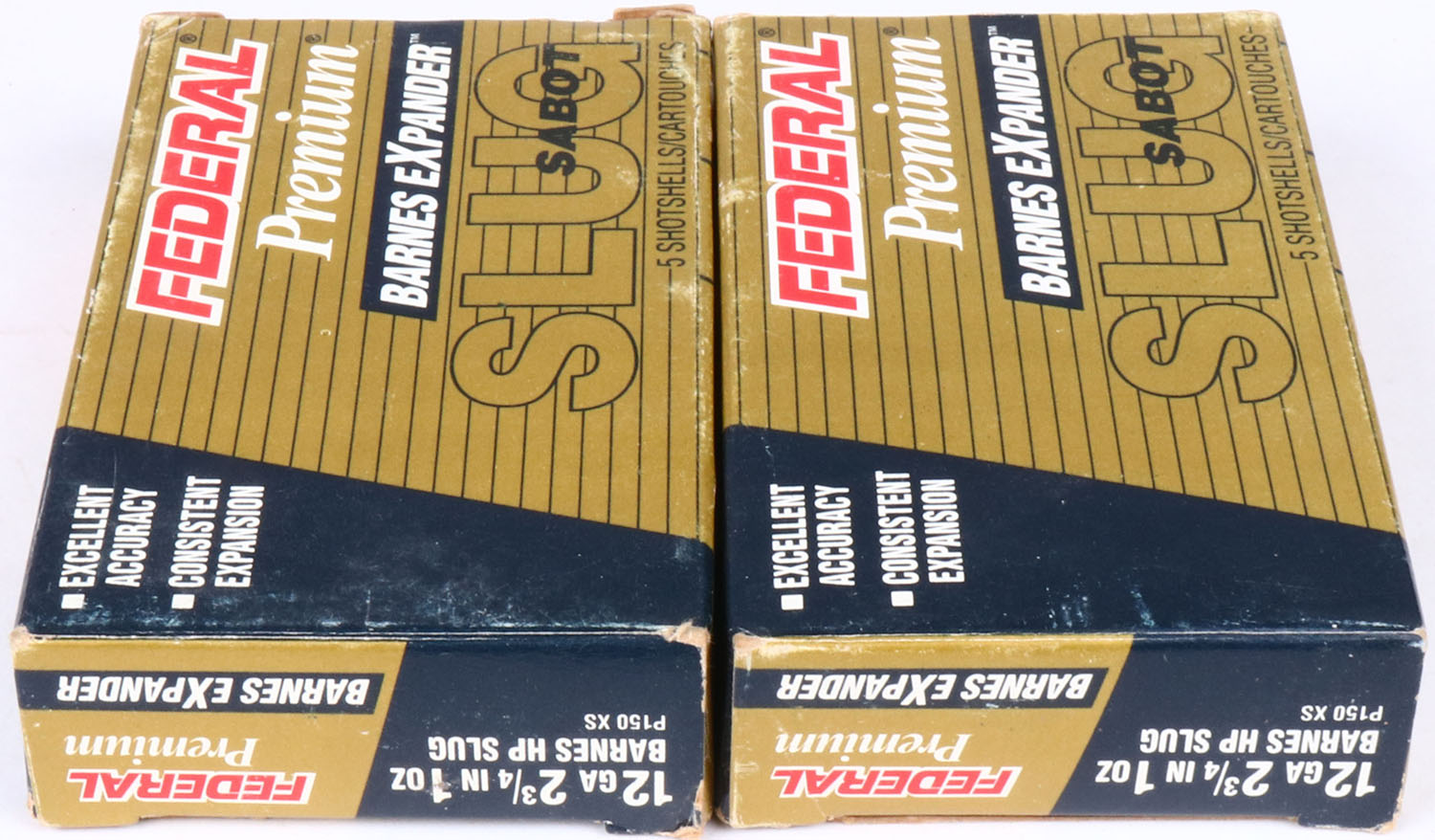 Lot of 2 Federal, 12ga., 1pc., Full/Partial, 2 3/4'', shot size Sabot Slugs, multi-colored box, shells are very good. Grade: Excellent - Value: 8 to 20