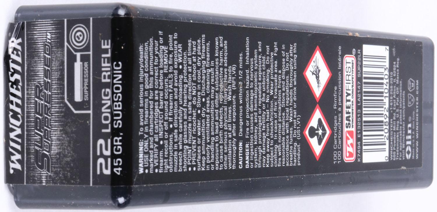 | Winchester, Super Suppressed, .22 Long Rifle, 45 Grain Subsonic,...