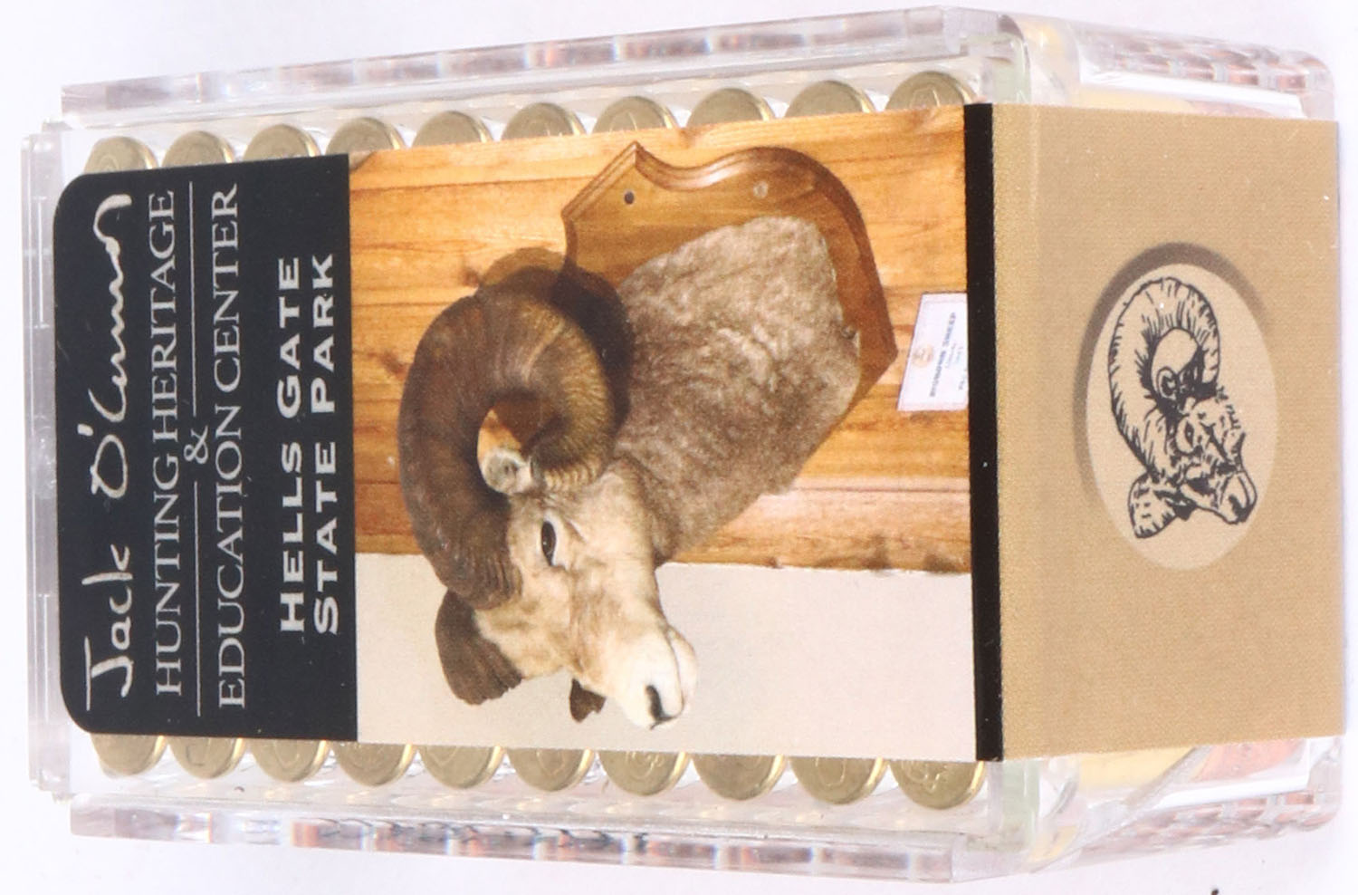 CCi, Jack O'Connor Hunting Heritage & Education Center - Hells Gate State Park, .22 Long Rifle, Full & Sealed, 2pc. Clear plastic tray with label features bighorn trophy, comes with extra round to display the unique bighorn headstamp, tray is clean & clear, label is intact with minty color. Grade: MINT - Value: 50 to 150