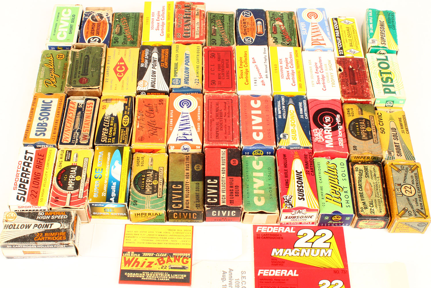 Mixed Mfg., Large lot of .22 boxes, most if not all are empty. Grade: Excellent - Value: 20 to 200