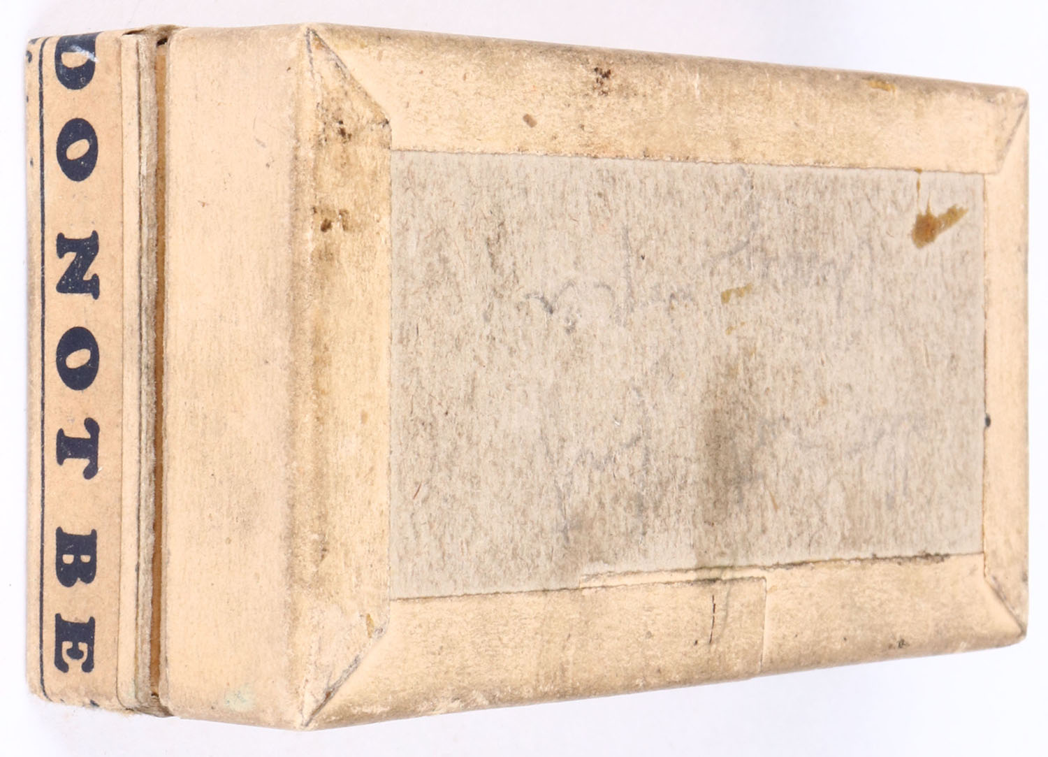 Winchester, .38 S&W special solid head primed shells, 2pc, Full, buff box with blue label & black/red print, box is solid with pencil marks, light age soiling, light rub marks & light edge wear, shells range from very good to good. Grade: Excellent - Value: 20 to 200