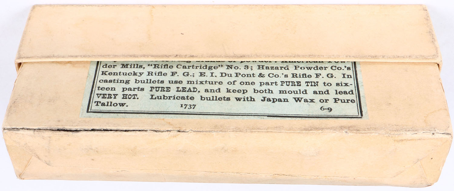 Winchester, .45-70-405 Government Cartridges, FULL & SEALED, 2pc. Buff box with green labels & black print, box is solid with very minor edge & shelf wear, two split end seams on bottom box & one partial split seam on back of bottom box. Grade: Excellent - Value: 100 to 300