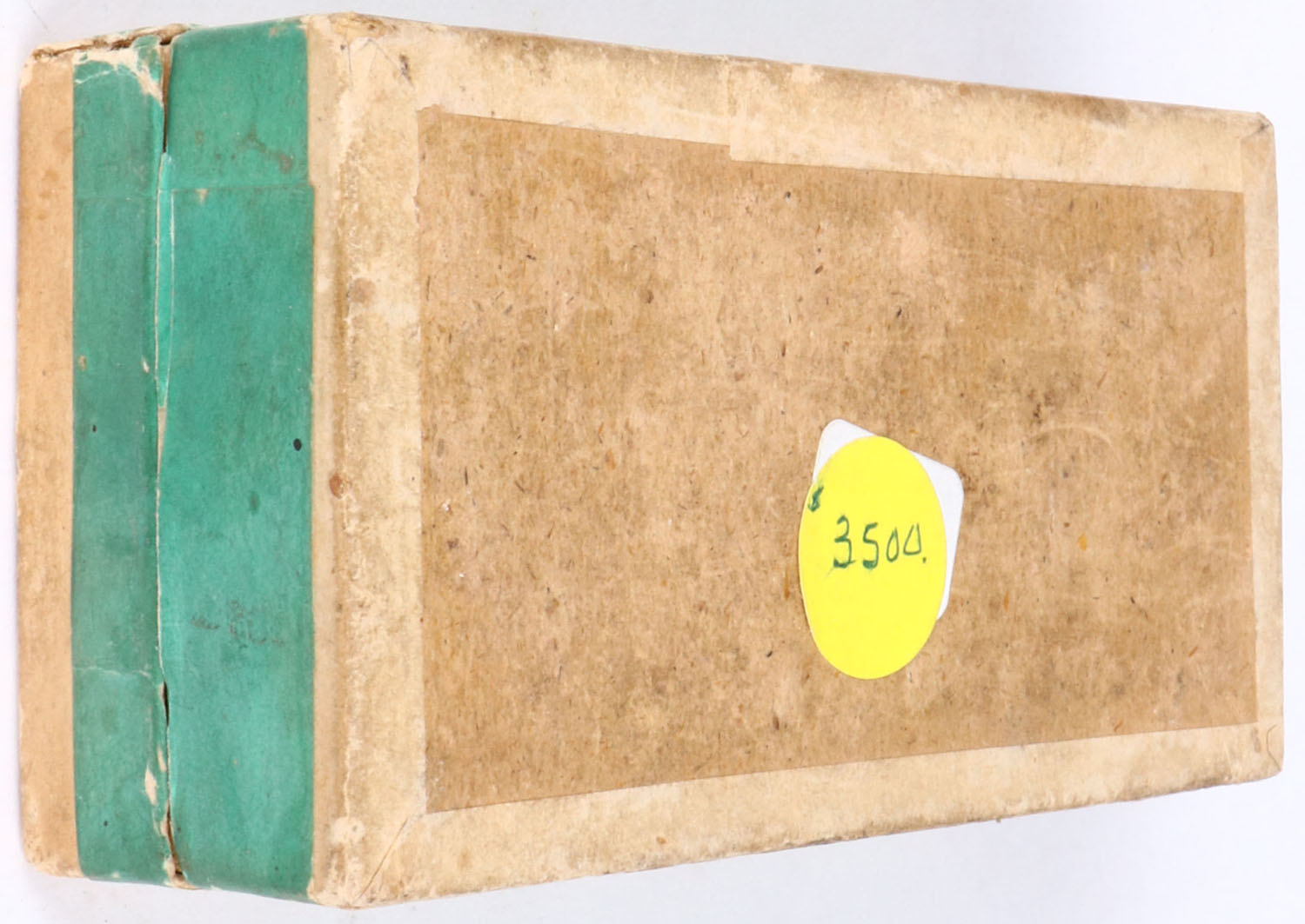 RARE & Early 1880's Winchester 44/100 Rim Fire, Has 44 FLAT. R.F. printed on both long ends & right side, 2 Pc., Full, box is solid with very good color, one side of seal label still intact, light age soiling/stains, rub marks & edge wear, ammo is very good. Grade: Excellent - Value: 4000 to 8000