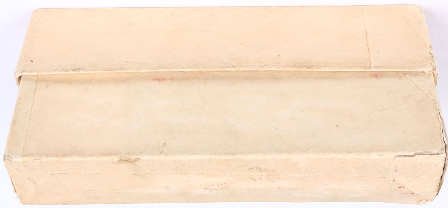 Winchester .33 Winchester, Smokeless, Model 1886, 200 Gr. Full Patch Bullets, 2pc., Full, buff box with red label & black print, box has one seam split on left end of bottom box, two partial seam splits on bottom of box, ammo is excellent. Grade: Excellent - Value: 100 to 300