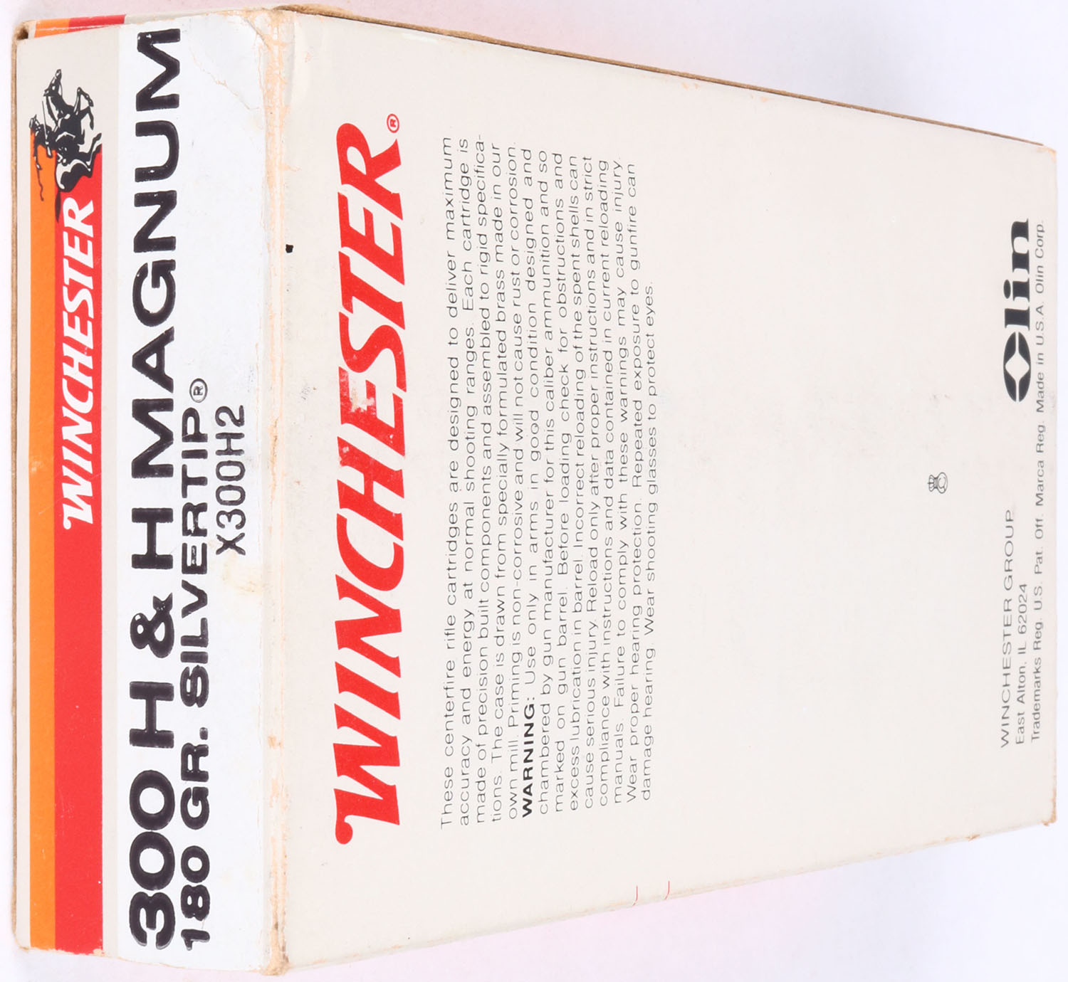 Winchester, Super-X, .300 H&H Magnum, 180 Gr. Silvertip bullet, 1pc, Full, Gray box with orange/red label & black/white print, box is solid with light wear & stickers, ammo is excellent. Grade: Excellent - Value: 30 to 90