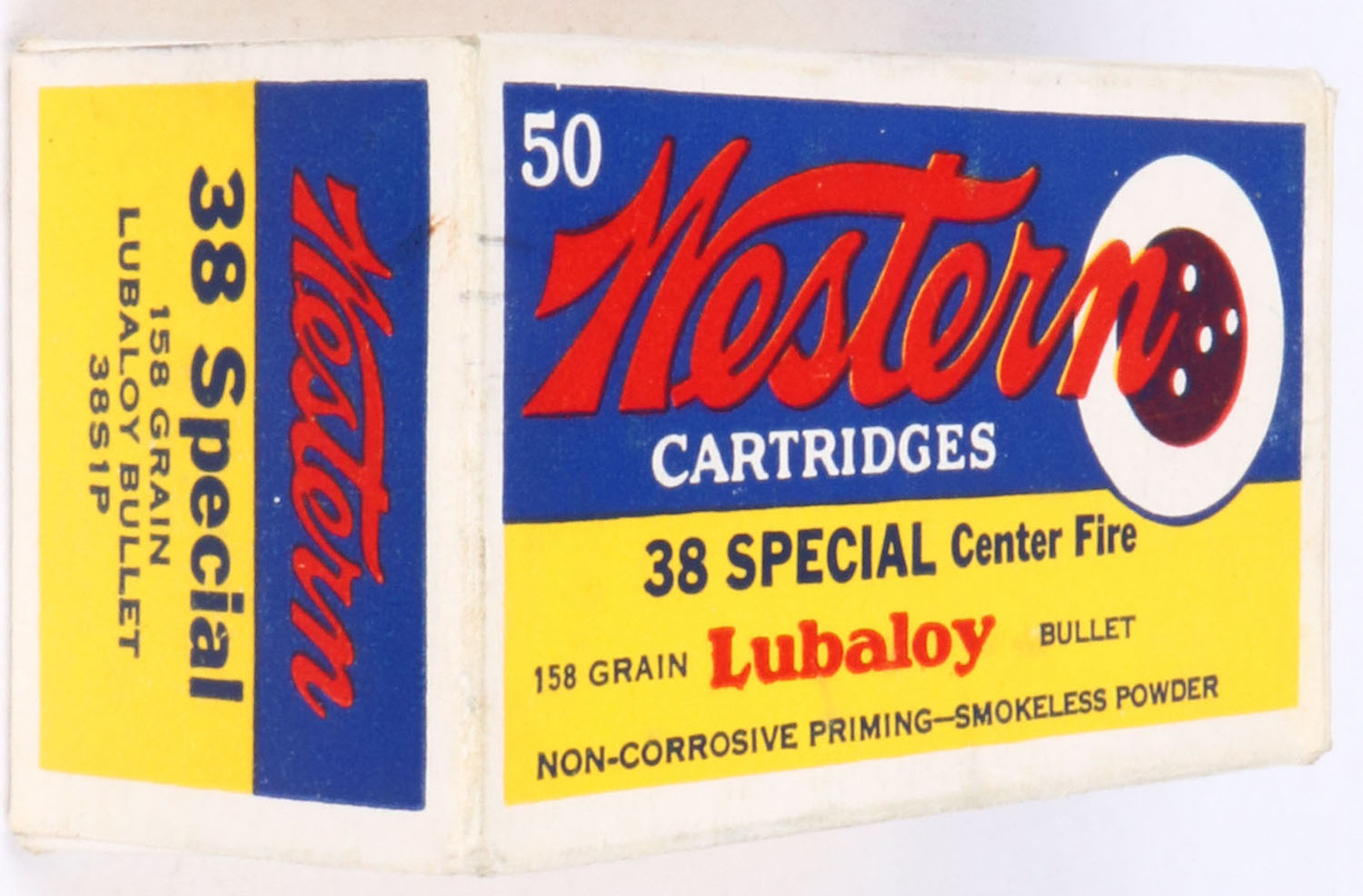 Western, Bullseye, .38 Special, 158 Gr. Lubaloy bullet, 1pc, Full with all R-P H/S'S, buff box with yellow/blue label & black/red/white print, box is solid with MINT color & Little to no wear, ammo is excellent. Grade: MINT - Value: 50 to 150