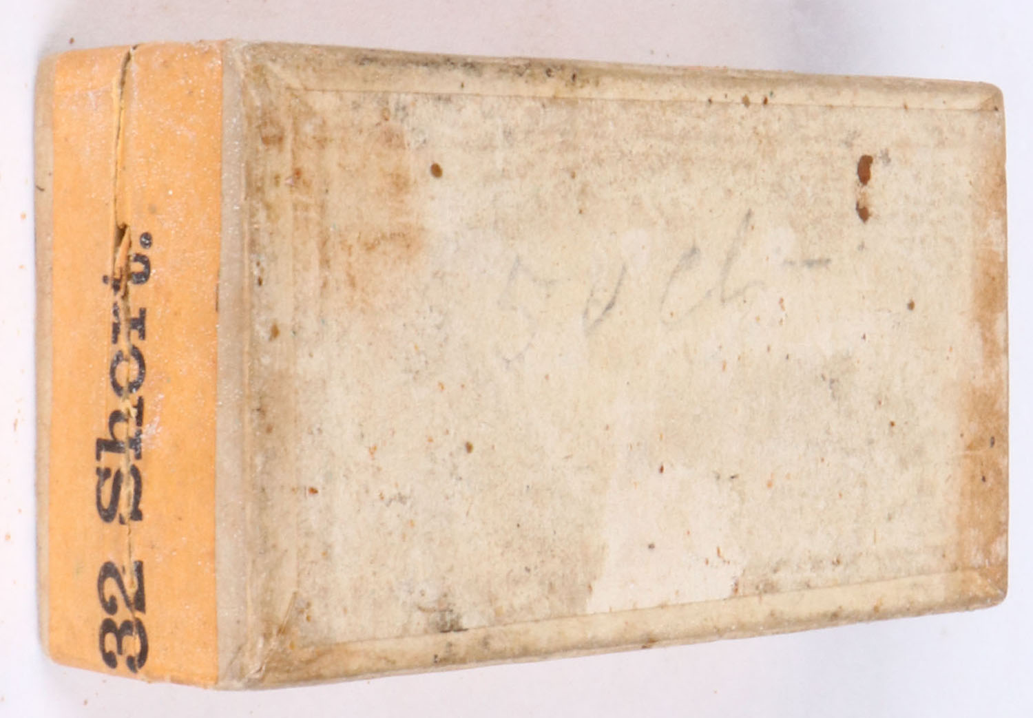 U.S. Cart. Co., .32/100 short, Target cartridges, 2pc, Full, buff box with images of shield & hunting scenes on top label, & black/red print, box is solid with very good color, & light wear, ammo is fair. Grade: Excellent ++ - Value: 100 to 200