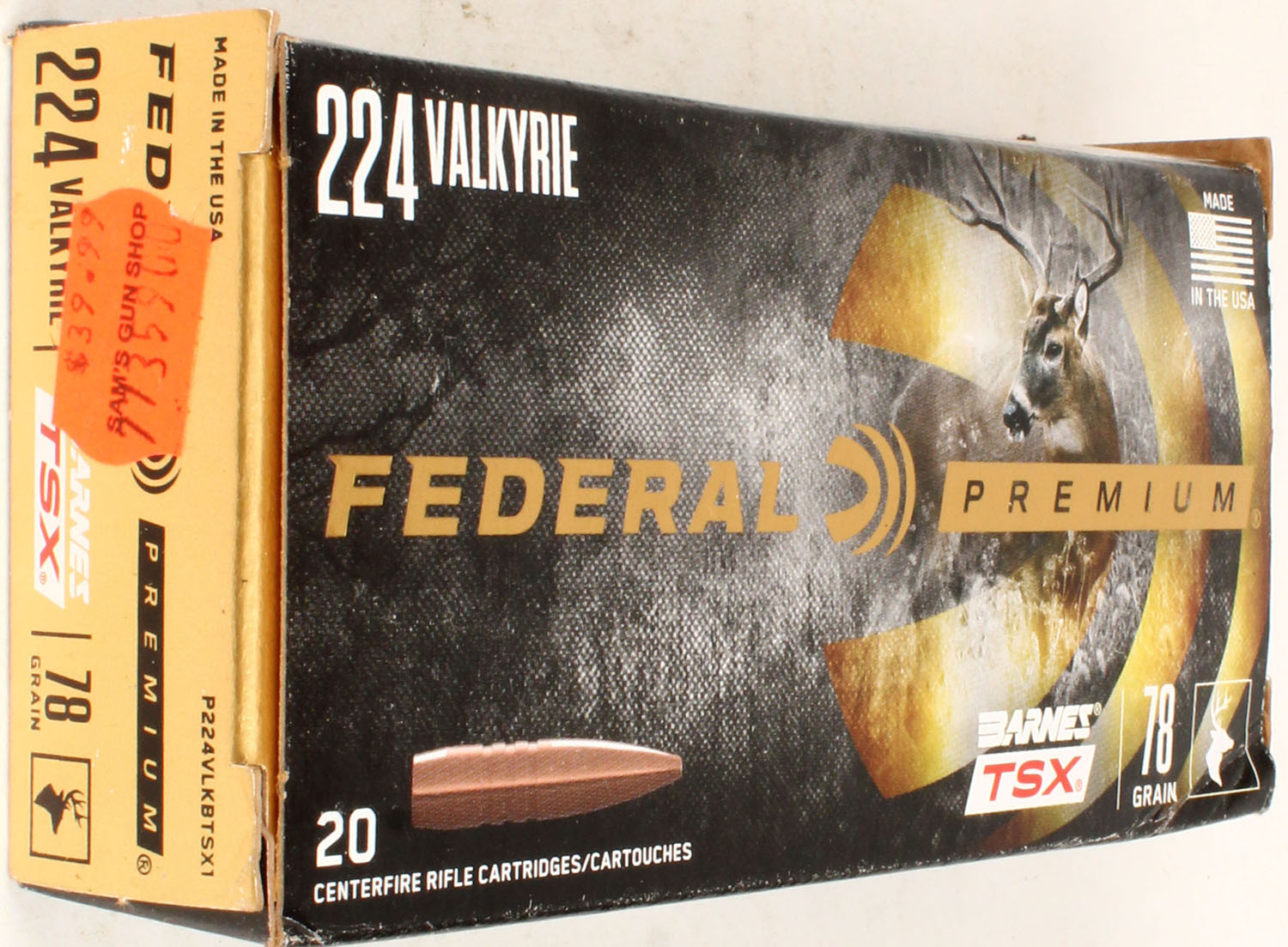 Federal, Premium, 224 Valkyrie, 78 Grain Barnes TSX, Full, 1pc. multi-colored box, box is solid with excellent color, Ammo is excellent. Grade: Excellent - Value: 20 to 60