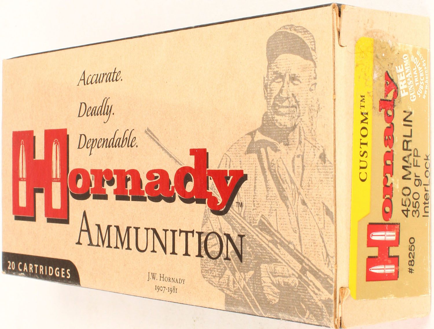 | Hornady, CUSTOM, 450 Marlin, 350 Grain FP Interlock, Partial 19r...