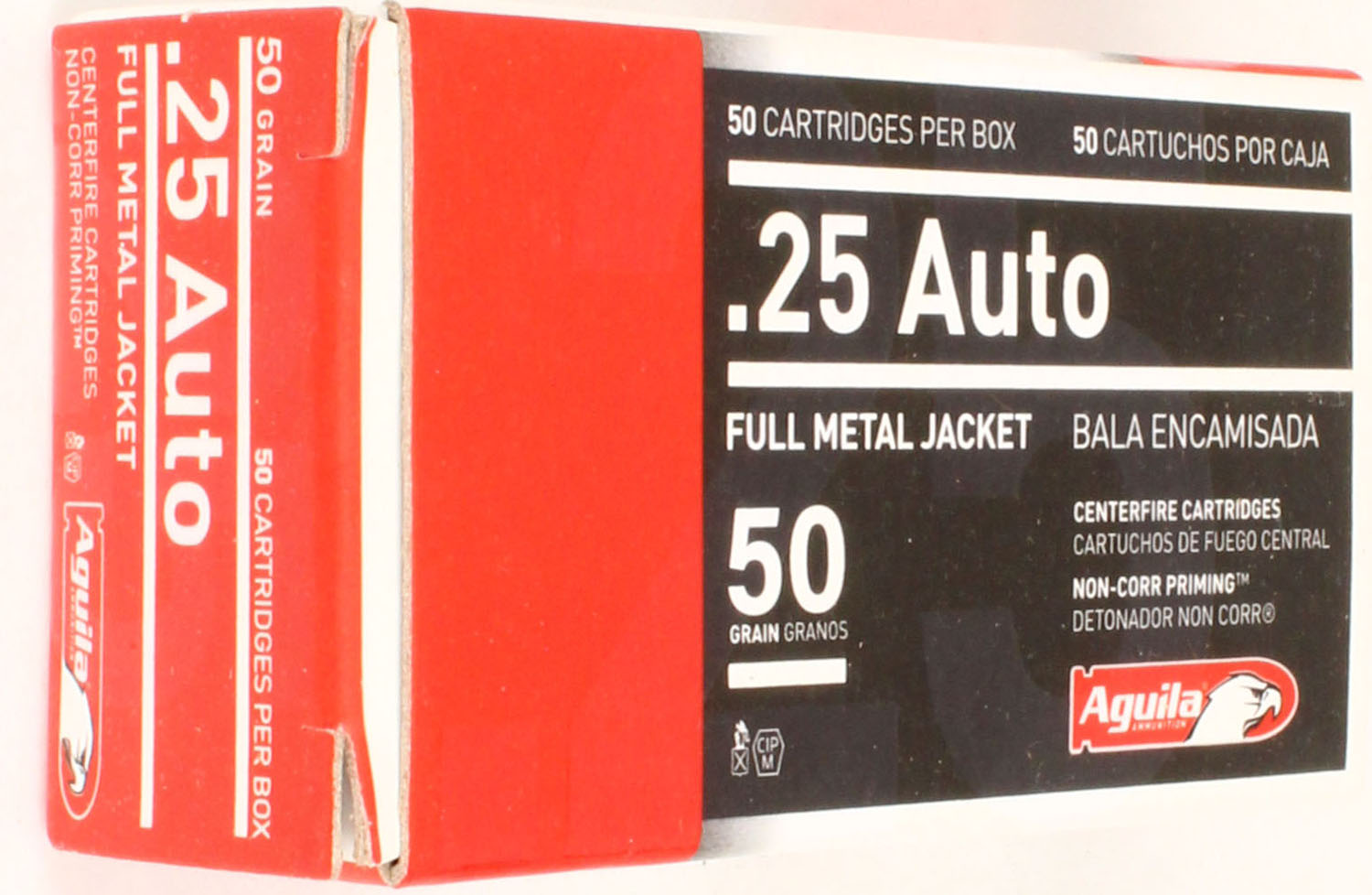 | Aguila, 25 Auto, 50 Grs. FMJ, Full, 1pc. Multi-colored box, box ...