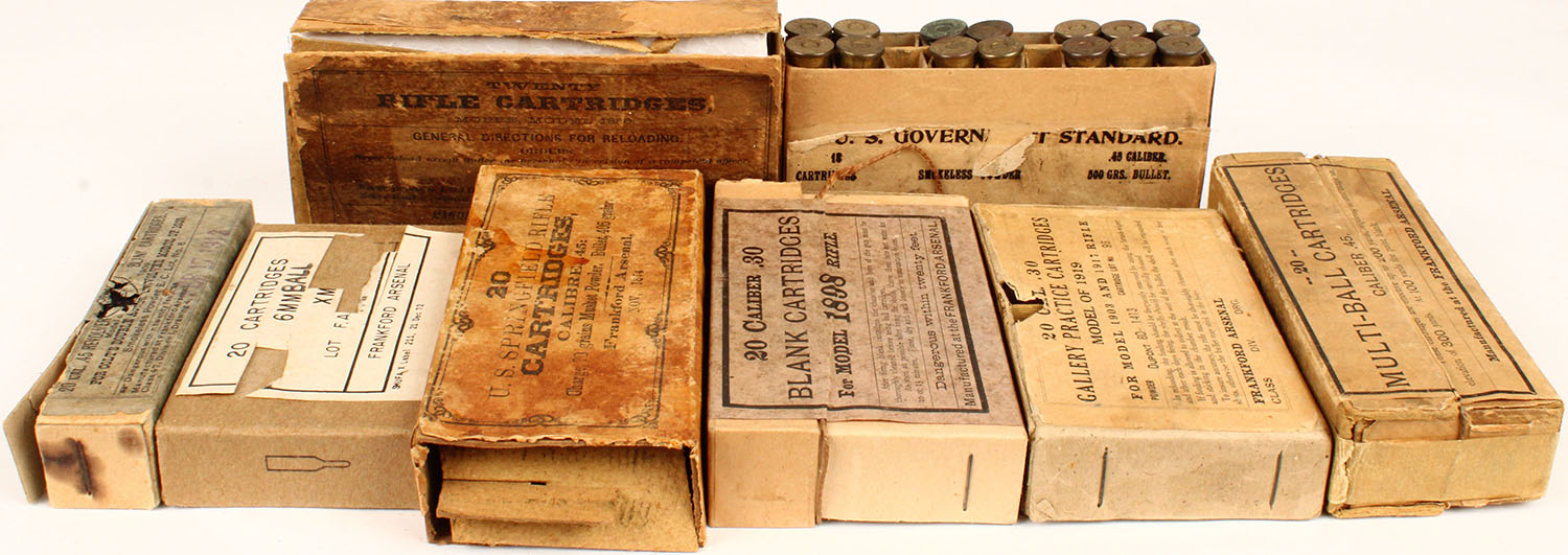 | Lot of 8 early 2pc ammo boxes, appear to be empty. Grade: Very ...