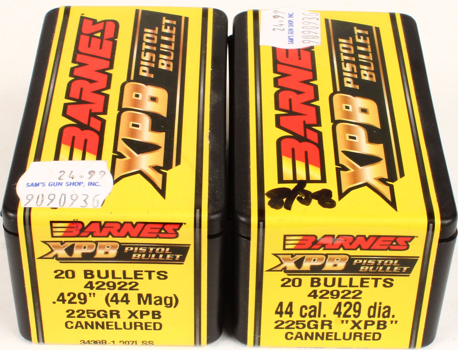 Barnes, XPB Pistol Bullets, .44 Magnum (.429''), 225 GR. XPB Cannelured, lot of (2) FULL & SEALED 1pc. Black plastic boxes, boxes are MINT with minty color. Grade: MINT - Value: 20 to 100