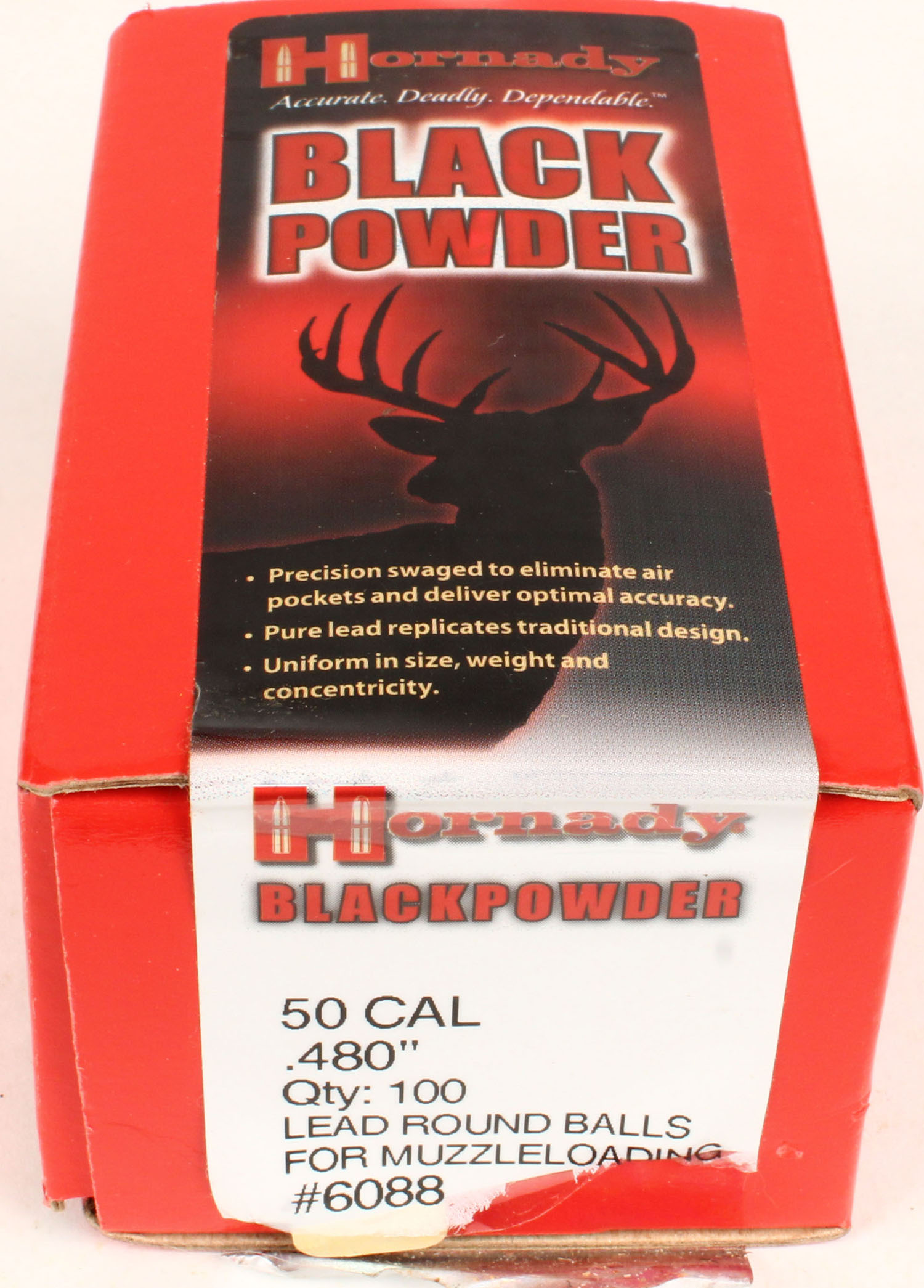 Hornady, Black Powder, .50 Cal. (.480'') Lead Round Balls, FULL & SEALED, Box is MINT with minty color. Grade: MINT - Value: 10 to 50