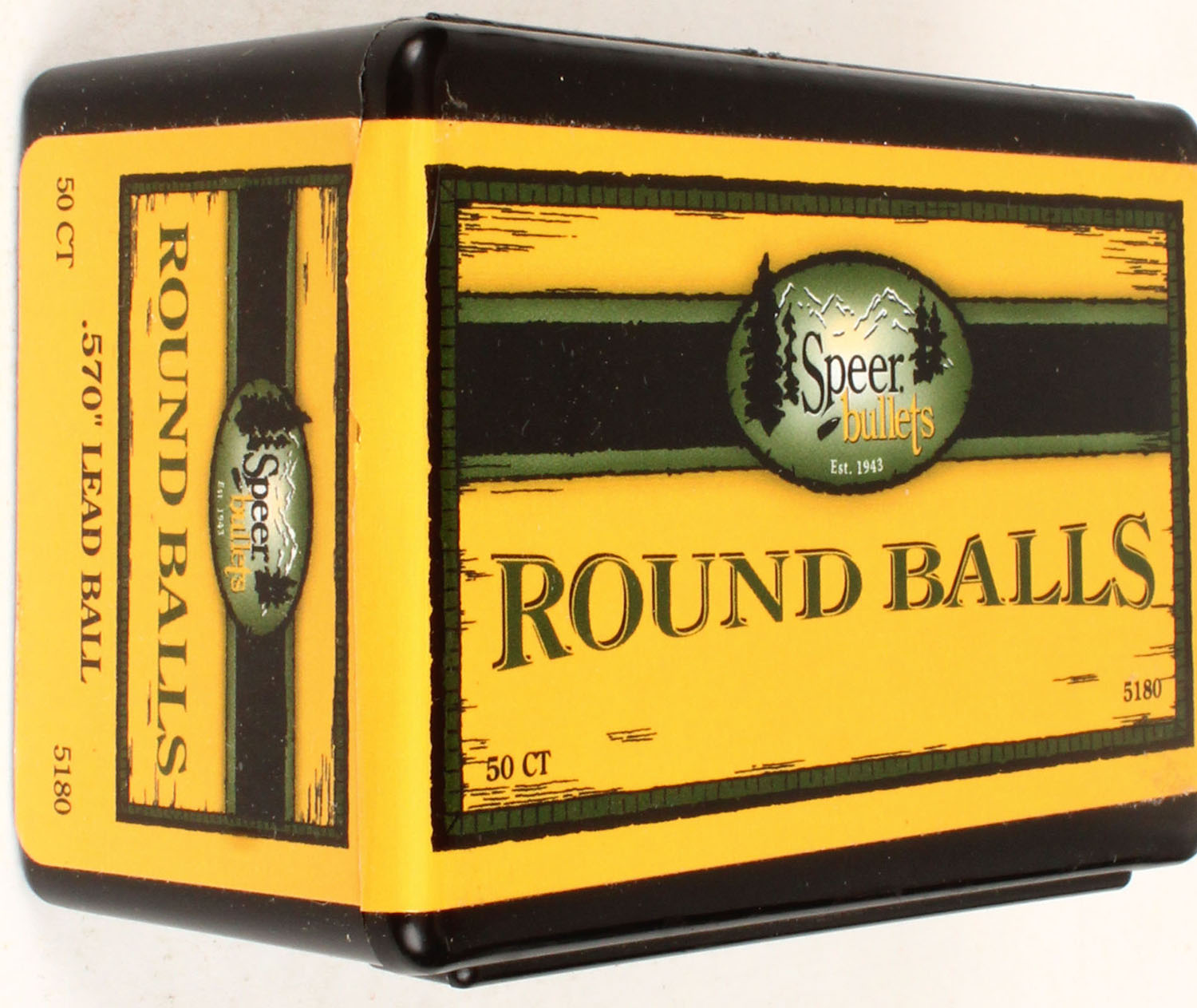 Speer, Round Balls, .570'' Lead Ball, Full, 1pc., precision swaged balls, soft lead, Black plastic box, box is solid with minty color, lead balls are minty. Grade: Excellent ++ - Value: 8 to 40