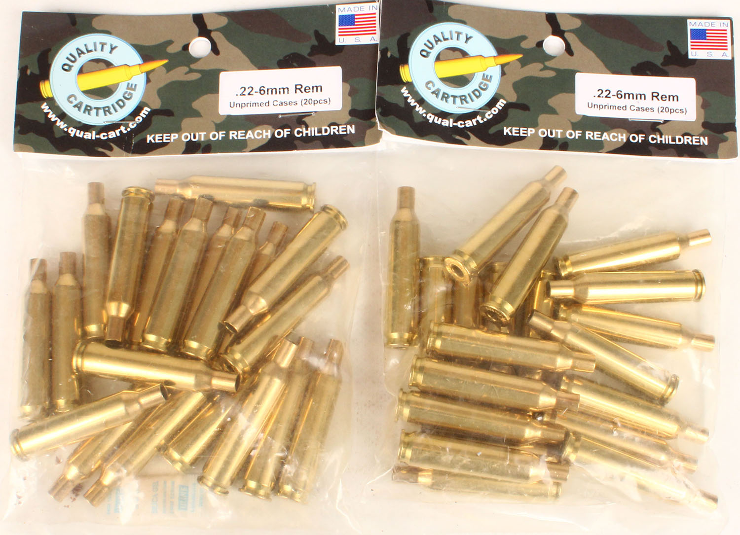 | Quality Cartridge, lot of (2) .22-6mm Rem. Unprimed cases, bags ...