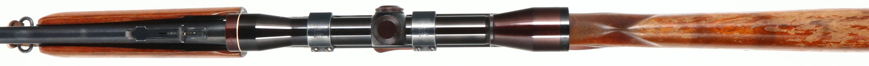 Remington, Gamemaster Model 760, CAL: 30-06, MFG: 1960, SN: 363913, Pump Action Rifle, 21 3/4'' barrel. The original checkered & capped pistol grip wood stocks are very good & solid. However, the original finish shows heavy flaking & is worn thin at the contact points. The metal blue finish rates 95% on the barrel & 85% on the receiver, with most of the loss at the belly of the receiver & some spotting/speckling. Bore is very good, but with light roughness amongst strong rifling. The receiver holds a Leupold M8-4X scope, held by Weaver rings. The barrel carries the elevated adjustable rear sight & ramp elevated blade front sight. Stock has a ventilated recoil pad. Sling loops hold a brown leather sling. FFL or C&R Req. - Value: 300 to 600