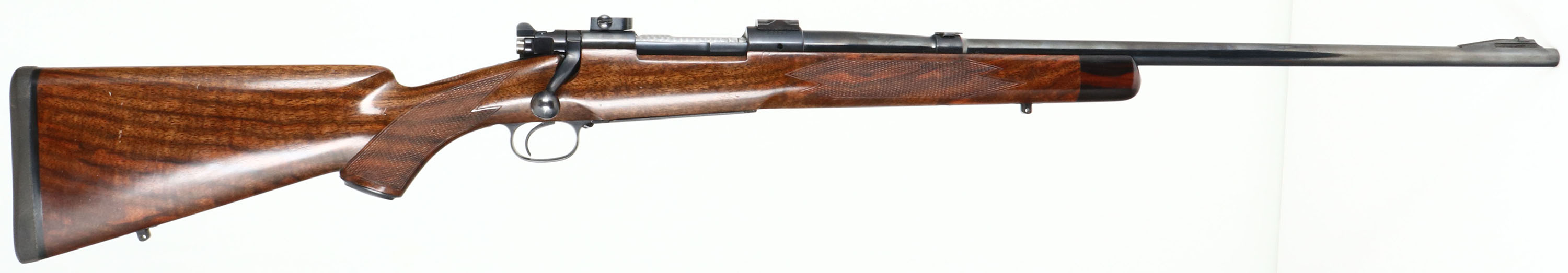 Winchester, Model 70, CAL: 30 GOV'T06 (30-06), MFG: 1940, SN: 30308, Bolt Action Rifle, 24'' tapered round barrel. Thethe custom deluxe checked & capped pistol grip walnut stock is excellent, with a darker wood forend tip. The stock has excellent grain, with sharp checkering & a few minor handling marks or light contusions to the finish. The original metal blue finish rates 97% overall. Bore is very good, with strong rifling. The receiver carries a couple of scope blocks, while the barrel holds a cutoff rear sight that functions as a blank & a front sight which has had the blade ground off so not to interfer with the optics of the previously mounted scope. The buttstock carries a Decelerator solid recoil pad. Sling provisions. A very nice cutomized rifle in a common hunting caliber. FFL or C&R Req. - Value: 500 to 1000