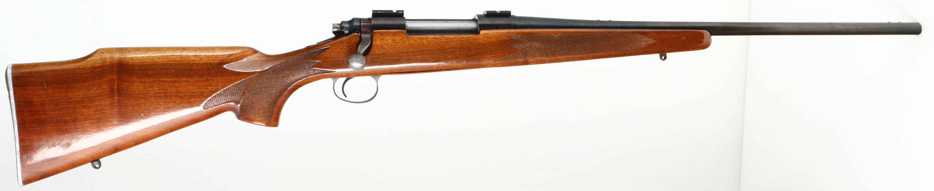 Remington, Model 700, CAL: 30-06, MFG: Late 1977, SN: 295583, Bolt Action Rifle, 22'' barrel. The original checkered & flat pistol grip wood stock appear good, however there are 4'' stress cracks on both sides of the belly of the stock infront of the trigger guard. The stock remains solid. The are several small scuffs & minor dings to the original high gloss finish. The rifle comes with an extra Remington black synthetic stock, which is in excellent condition, with Remington solid recoil pad & sling studs. The original metal blue finish on the barrel rates 80%, 90% toning plum on the receiver. Bore is very good. The receiver holds a couple of scope blocks from a previous scope mounting, while the barrel is tapped with factory sight provisions for front & rear sights. Stock carries a Remington checkered metal buttplate. Sling studs. FFL Req. - Value: 600 to 1000