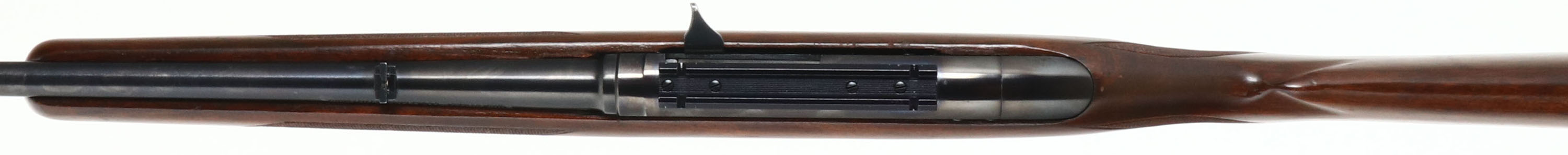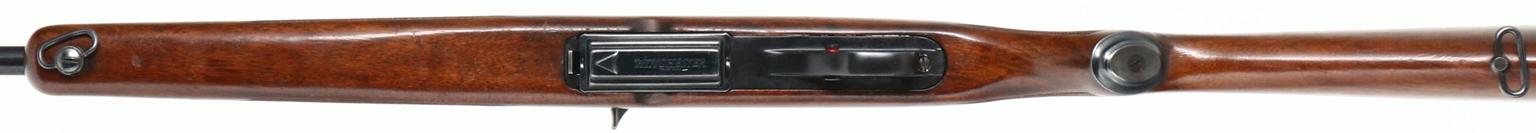 RARE Winchester, Model 100, CAL: 243 WIN, MFG: 1961, SN: 27799, Semi Auto Rifle, 22'' barrel. Early 1st yr & (Pre-64) production having the hand cut checkering, which was later replaced with impressed basket weave. The original checkered & capped pistol grip wood stock is excellent. There are some minor contusions, scratches & scrapes to the original finish. The metal blue finish rates 97% overall. Bore is excellent. The receiver is factory tapped & drilled on the top & right side. The top of the receiver carries a scope base, while the barrel holds a single leaf folding rear sight & ramp elevated hooded blade front sight. Stock carries a checkered plastic buttplate. Factory sling loops. Four round detachable mag. This particular Winchester model had a recall years ago, which the cosignor indicates was properly completed. FFL or C&R Req. - Value: 600 to 1000