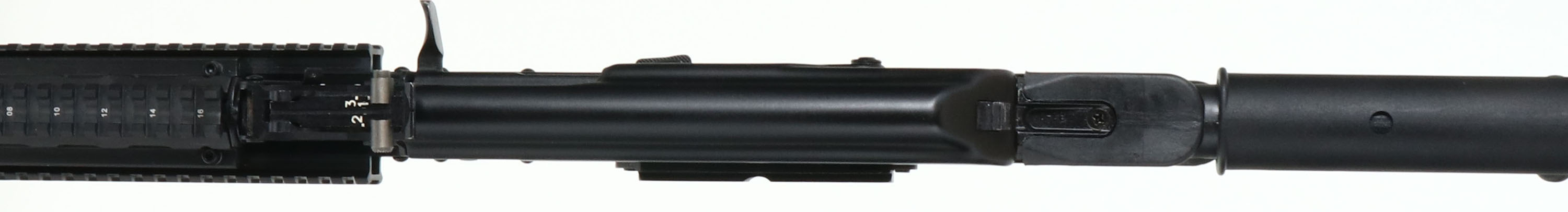 Izhmash, Saiga AK-74, CAL: 5.45x39, MFG: Modern, SN: H09887575, Semi Auto Rifle, 16 1/4'' barrel. The Tapco 6pt adjustable stock is excellent. The grooved USA marked plastic grip & Magpul Cage foregrip are excellent. The matte black finish on the receiver & barrel is excellent, rating 99%. Bore is excellent. The receiver carries a slide adjustable rear sight & elevated winged pin front sight. Rear sling loop & front sling swivel present. UTG quad rail forend for accessories & optics. Comes with army green 30rd mag. As a side note, reference lots 90529, 90531 & 90532 in this auction for additional mags for this rifle. FFL Req. - Value: 800 to 1600