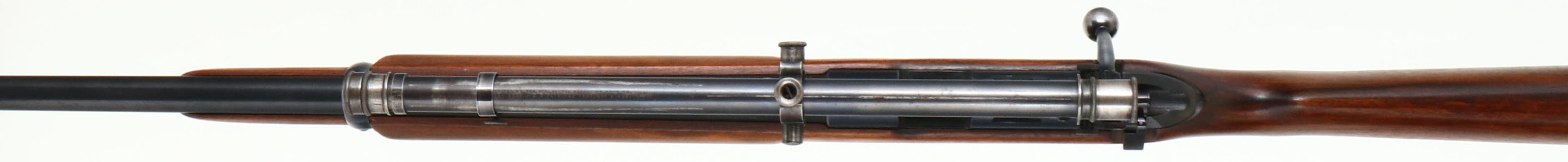 Winchester, Model 52 Target Rifle, CAL: 22 LR, MFG: 1930, SN: 19999, Bolt Action Rifle, Rare 28'' Stainless barrel. The original flat pistol grip & later variation non-groove forend wood stock is excellent, with light scrapes, scratches & dings to the original finish. The metal blue refinish rates 90% overall, with some splotchy areas of thinning on the barrel. Bore is excellent. The receiver holds the correct flip-up ladder sight & the barrel holds a raised front blade sight. No rear sight provision, instead the barrel is fitted with factory scope blocks, which carry Winchester scope rings & a Winchester A5 scope. Proof stamping on receiver & barrel were correctly stamped to the left side allowing for the factory mounted scope. Buttstock carries a checkered metal buttplate. Sling loop on stock & front barrel band. Original Winchester stamped detachable mag. An excellent & very good condition, factory scoped 52 target. Very collectible. FFL or C&R Req. - Value: 800 to 1500