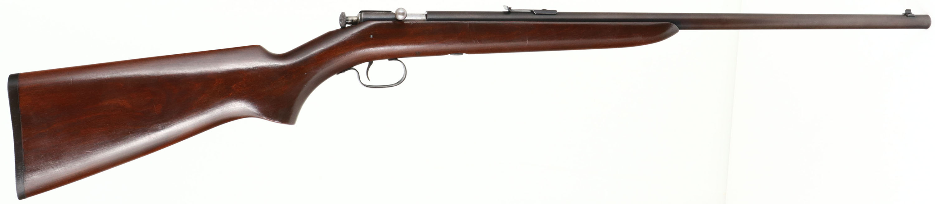 Winchester, Model 59, .22 S. L. LR. Cal., MFG. late 1930-31 SN: none, Bolt Action Rifle, 23'' barrel, Improved upon model 58. The original pistol grip wood stock is excellent & solid, with a few minor contusions & scratches to the original finish. The metal finishes have toned to an even chocolate brown patina. Bore is excellent. Barrel holds an adjustable rear & standard front sights. Winchester marked plastic buttplate. Very nice original condition & rare with production limited to two years & approx. 9,200 mfg. FFL or C&R Req. - Value: 400 to 800