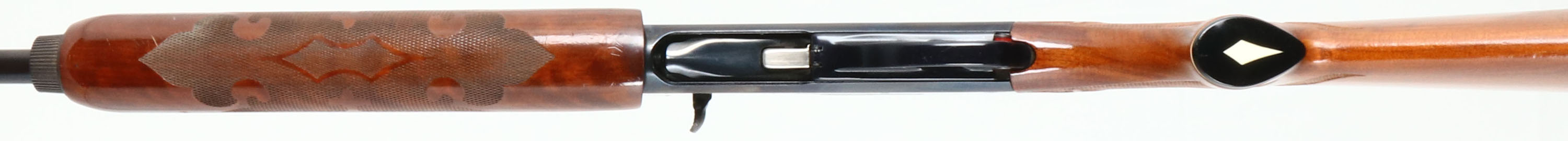 Remington, Model 1100, CAL: 20 GA, MFG: Modern, SN: L463276X, Semi Auto Shotgun, Choke: Marked IMP CYL, 2 3/4'' Chamber, 23 1/4'' Ventilated rib barrel including length of Poly Choke. The original checkered & capped pistol grip wood stocks are excellent, displaying few light handling marks to the original finish. The metal blue finish rates 95% overall, with an area of cleaned speckled pitting on the left side of receiver & on cocking handle. Bore is excellent & bright. The rib holds a single front white bead. Buttstock carries a Remington buttplate. LOP 14''. A nice condition versatile shotgun in a popular gauge for upland birds. FFL Req. - Value: 300 to 600