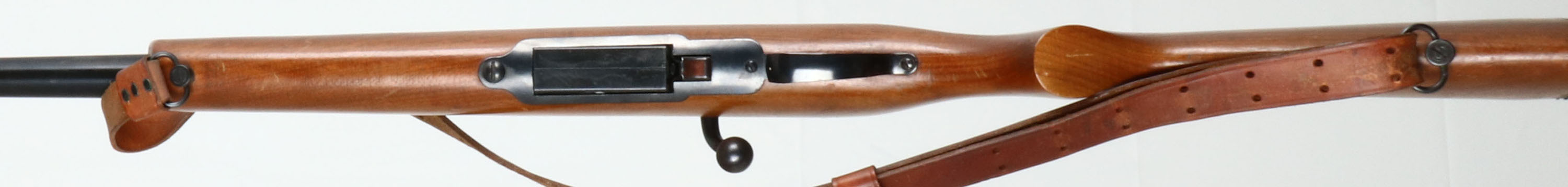 Marlin, Model 55 '' The Original Marlin Goose Gun'', CAL: 12 GA, MFG: 1954-64, SN: 25709264, Bolt Action Shotgun, RARE 36'' barrel. The original flat pistol grip stock is excellent. There are scrapes & scratches to the original finish. There is an open stud hole ahead of the current sling stud. The metal blue finish on the barrel rates 97%, with some light rust speckling & one small areas of pitting on the underside. The receiver rates 98%, with numerous small dings. The receiver is also tapped & drilled on the left side, with two open screw holes. Bore is excellent & bright. The barrel holds a single front bead. Stock carries a ventilated black rubber recoil pad. Sling loops & leather sling. Comes with extra mag. Gold tone trigger. A nice condition original Marlin Goose Gun. FFL or C&R Req. - Value: 500 to 1000