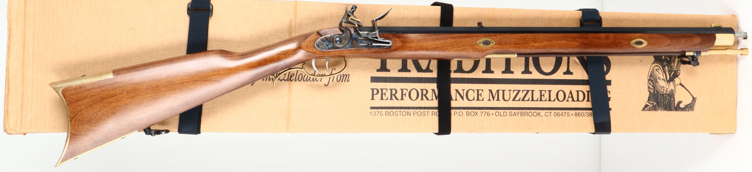 BOXED, Traditions, Tennessee Flintlock, Cal: .50, MFG: Modern, S/N: 14-13-067594-06, Flintlock Muzzleloader, 23'' barrel. The cheeked straight wrist wood stock is excellent with no wear. The metal finish rates 98%. Right side of barrel is marked with S/N, ''TRADITIONS TENNESSEE'', ''MADE IN SPAIN OLD SAYBROOK.CT.U.S.A. .50 CALIBER 1:66'', right side of barrel is marked with warming. Bore is excellent. Blade front side with U-notch rear sight. Brass crescent moon buttplate, bottom sling mounts, has ramrod. Comes with factory box. Muzzleloader, No FFL Req. - Value: 200 to 400