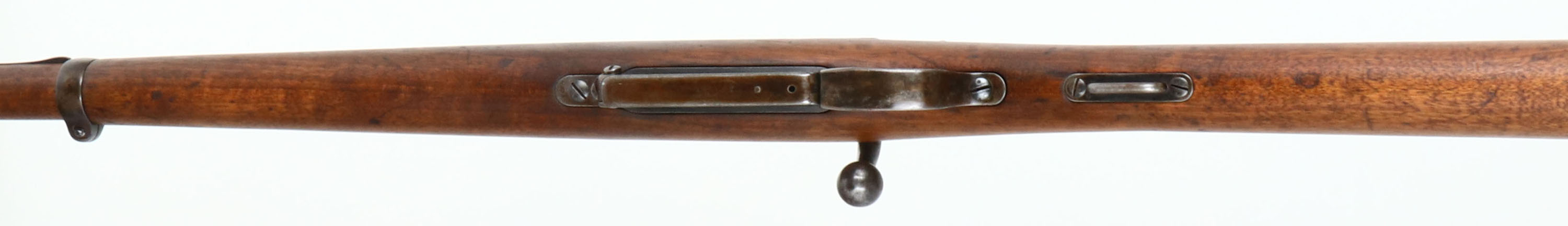 Loewe, Model: Argentino 1891 Cavalry Carbine, Cal: 7.65x53mm, MFG: 1895, S/N: A7022, Bolt action rifle, 17 3/4'' barrel, The straight wrist wood stock is very good with light nicks, dings, dents & wear from use/age, faint S/N mark on right side of stock by S/N on receiver, & it appears that it could match but most of the numbers are too faded to read, faint cartouche on top of upper handguard, faint cartouche on right side of stock by cheek weld. The metal on the barrel & receiver has toned to a even gunmetal gray with notes of patina. Left side of the receiver is marked with proof marks, ''MAUSER MODELO ARGENTINO 1891'', ''MANUFACTURA LOEWE BERLIN'', top of receiver is marked with a slightly worn but still visible Argentine coat of arms, right side of receiver is marked with S/N, top of barrel has a proof mark, right side of barrel is marked with S/N, S/N matched bolt & barrel. Bore is good, clean & bright with thinned rifling. Barleycorn front sight with protective wings, V-notch ladder rear sight marked 4 to 14, metal buttplate with light patina. bottom rear sling bar. Antique, No FFL Req - Value: 400 to 800