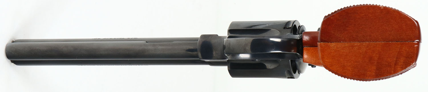 BOXED, Colt, Model Python, (D5560) CAL: .357 Magnum, MFG: 1975, SN: S78555, Double Action Revolver, 6'' barrel. The Colt Python was introduced as a premium model in 1955, in caliber .357 Magnum. The Python is built on the large I-frame & has a reputation for accuracy, smooth trigger pull, & a tight cylinder lock-up. It has a 6-shot swing-out cylinder & was available in Python blue, Royal blue, Python nickel & Python stainless steel finishes. Some firearm collectors & writers have described the Python as ''the finest production revolver ever made''. It has a wide serrated target hammer, ventilated rib, & fully adjustable target quality rear sights. The left side of barrel is stamped ''PYTHON 357 * .357 MAGNUM CTG * ''. The Rampant Colt gold medallion, checkered walnut grips on this example are mint. The high polish blued finish is near mint. Bore is mint. The satin finished top of the ventilated rib barrel holds a screw height adjusting ''U'' notch rear sight & front blade sight. This gun comes in its original Colt wood grain box, with instruction manuals. Basically NOS, & very collectible when found in this condition. FFL Req. - Value: 2500 to 3000