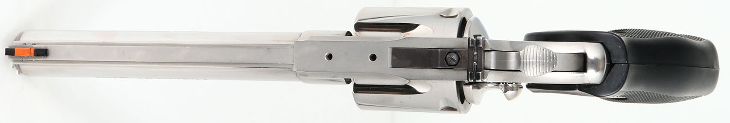 CASED, Colt, Anaconda, BTS, CAL: .44 Magnum, MFG: 1997, SN: MM95918, Double Action Revolver, 6'' barrel. The Colt Anaconda was introduced in 1990, in caliber 44 Mag & 45 Colt to compete in the popular large-bore Magnum pistol market. The Anaconda was built on the new & heavier large ''MM''-frame & was initially only produced in stainless steel as standard, with different Special order finishes available. The left side of barrel is stamped ''COLT ANACONDA -- 44 MAGNUM -- ''. The Colt marked textured rubber grips are excellent. The rare mirror high polish stainless (BTS) finish is excellent. Bore is minty. The frame holds a white outline ''U'' notch rear sight & front blade sight, with orange insert. This gun comes in an original Colt blue plastic case, with instruction manual. FFL Req. - Value: 2000 to 3000