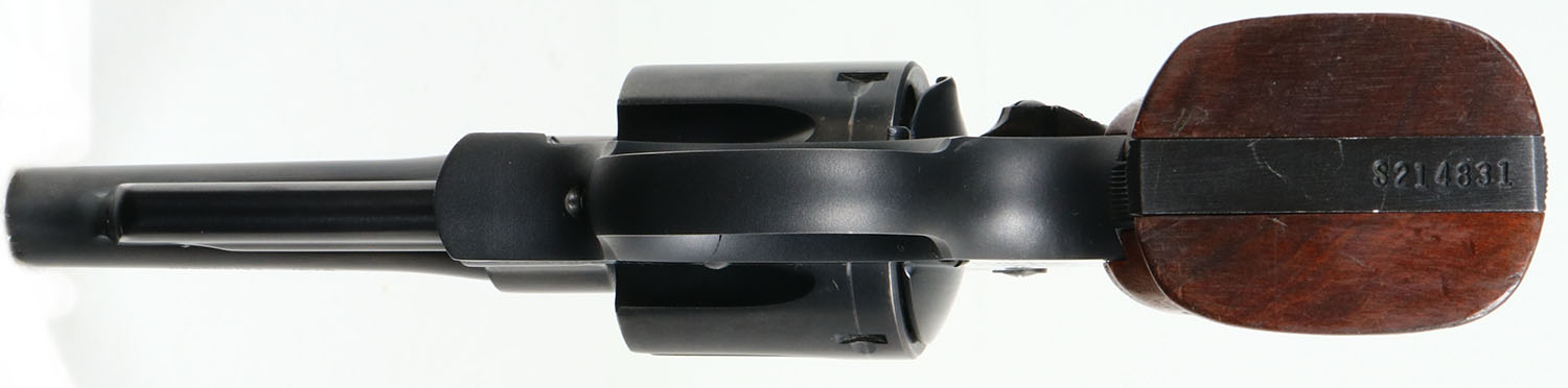 Smith & Wesson, Model 28 Highway Patrolman, 4 Screw, CAL: 357 MAG, MFG: 1961, SN: S214831, Double Action Revolver, 4'' barrel. The left side of the barrel is marked ''SMITH & WESSON''. The right side of the frame is marked with the S&W trademark logo & the standard four line address stamp. The right side of the barrel is marked ''357CTG * HIGHWAY PATROLMAN''. The S&W logo silver medallion & checkered diamond grips are excellent. The metal blue finish rates 99%, with a faint drag line on the cylinder. The trigger & hammer are case-hardened, retaining full case-colors. Bore is excellent. The frame holds an adjustable rear sight & ramp elevated blade front sight. A very high condition & desireable Model 28. FFL or C&R Req. - Value: 1000 to 1600