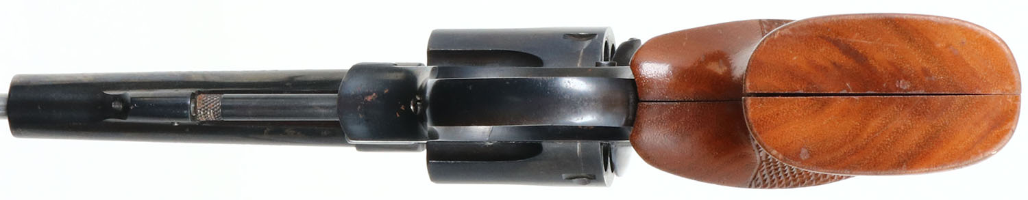 LLAMA, Model Martial, CAL: 38 Special, MFG: 1959-70, SN: 724795, Double Action Revolver, 4 '' barrel. The checked wood grips are excellent. The metal blue finish rates 90% overall. Bore is very good. The frame holds an adjustable rear sight & the barrel holds an elevated serrated blade front sight. Nickeled hammer & trigger. FFL or C&R Req. - Value: 300 to 500