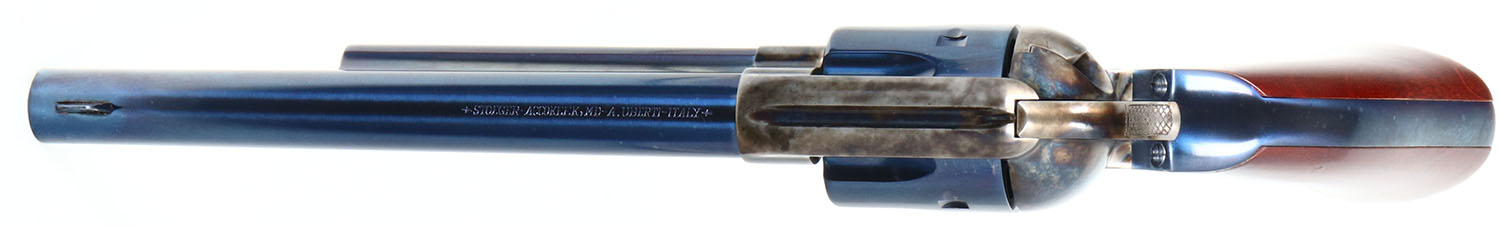 CASED, A. Uberti, Model 1873 Cattleman, CAL: 45 COLT, MFG: Modern, SN: UC6341, Single Action Revolver, 7 1/2'' barrel. The wood grips are excellent. The charcoal-blue metal finish on the barrel, cylinder & trigger guard is excellent, rating 99%+. The frame & hammer are case-hardened, retaining full case-colors. Bore is excellent. Groove & blade sights. Comes in a custom wood case, with red interior. Included in the case is paperwork, a cleaning kit in a orange metal container, (6) snap caps, lock/key & case keys. FFL Req. - Value: 700 to 1000