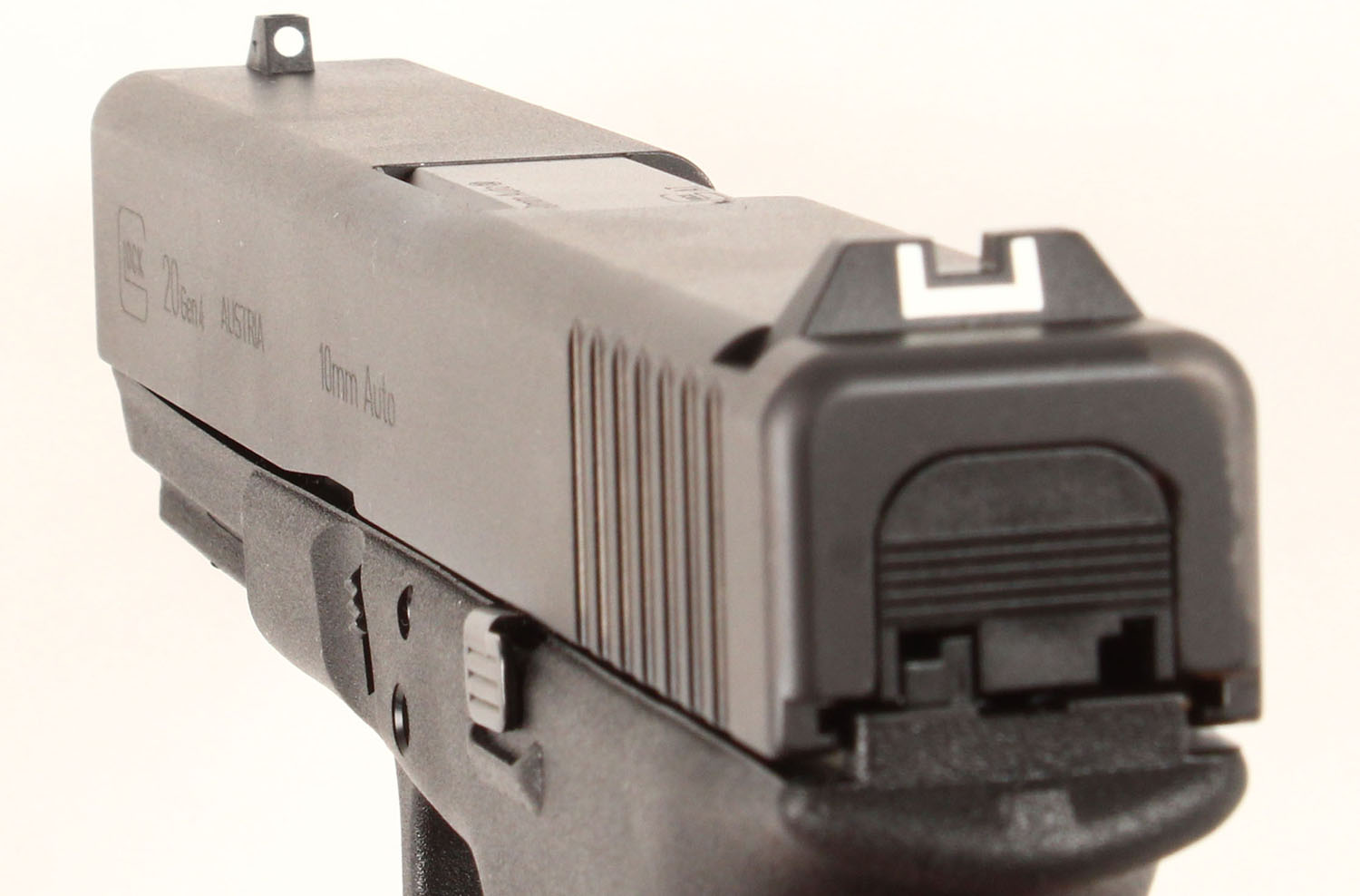 NEW CASED, Glock, Model 20 Gen 4, CAL: 10mm, MFG: Modern, Semi Auto Pistol, 4 1/2'' barrel. The textured polymer grip & frame are mint. The factory matte black finish is mint. Bore is mint. Factory square notch rear sight & white dot front sight. Comes in factory hard case, with owners manual, lock/key, cleaning rod/brush, grip attatchments, (3) 15rd mags & speed loader. NOS. FFL Req. - Value: 500 to 700