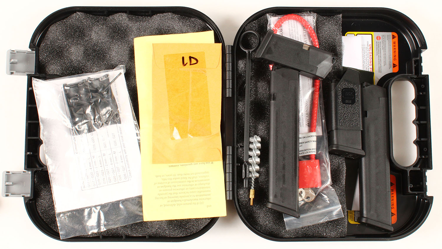 NEW CASED, Glock, Model 27 Gen 4, CAL: 40 S&W, MFG: Modern, SN: SFZ715, Semi Auto Pistol, 3 3/8'' barrel. The textured polymer grip & frame are mint. The factory matte black slide is mint. Bore is mint. Factory sights. Comes with factory test fire cartridge, safety pamphlet, lock/key, cleaning rod/brush, (3) 9rd mags & (2) 22rd mags. NOS. FFL Req. - Value: 450 to 650