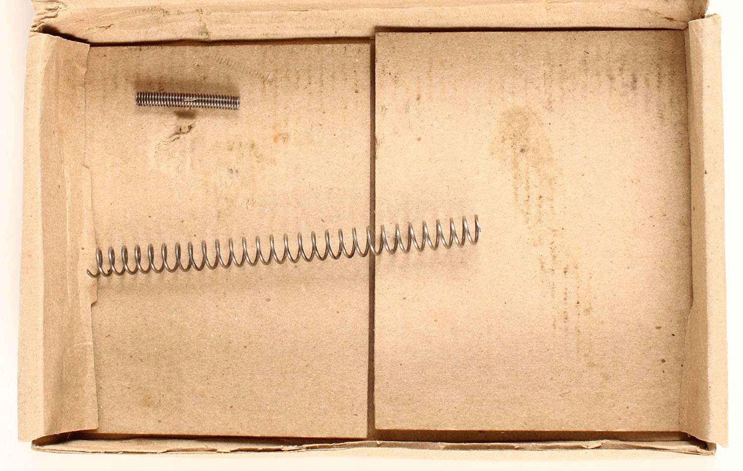 D.G.F.M - (F.M.A.P), Model 1927, CAL: 45ACP (11.25mm), MFG: 1958, SN: 100401, Semi-Auto Pistol, 5'' barrel. The left side of the slide is marked ''D.G.F.M - (F.M.A.P)'' & the right side of the frame is marked ''SIST. COLT CAL 11.25mm MOD 1927''. The full SN is marked on the right side of the frame, twice on the slide & the barrel. The grooved wood grips are excellent. The entire gun has been buffed to gun metal grey, with spots toned to brown patina. Bore is excellent, but appears grainy. Factory fixed notch & blade sights. Comes in plain cardboard box, with extra spring. Box is aged. FFL or C&R Req. - Value: 400 to 600