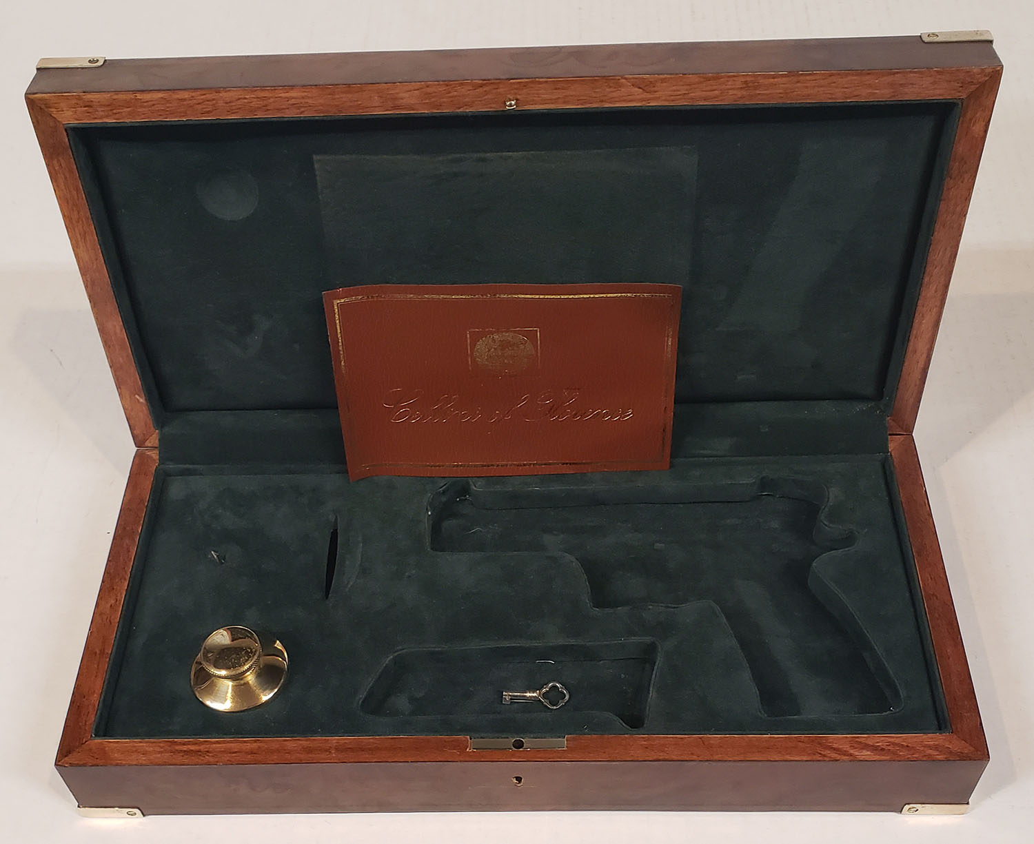 | Fantastic Burl wood semi-automatic pistol case. Comes with brass...