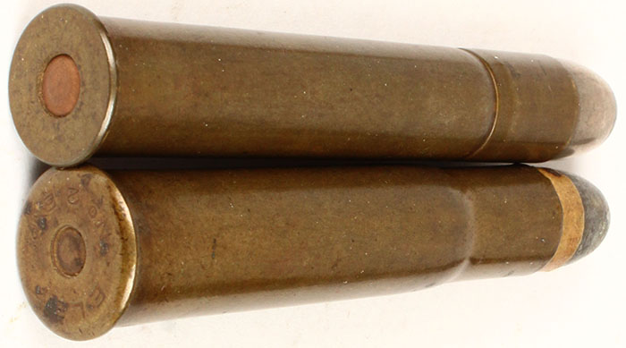Lot of 2. (1) 500 x 3'' Nitro Express. HS:''ELEY NITRO .500''. RN CN SP. (1) 577/500 #2 Express. HS:''ELEY . No 2 EXP .'', RN paper patch lead w/ copper tube. Grade: Excellent - Value: 20 to 60